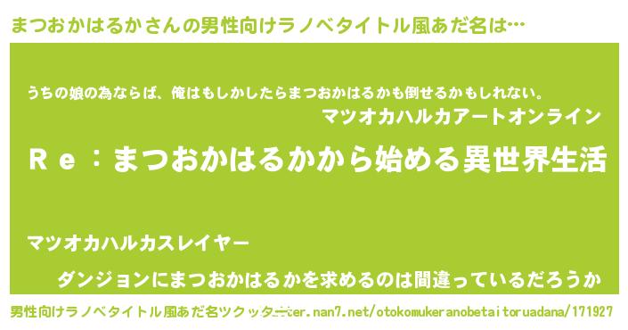 | 女子向けラノベタイトル風あだ名 | 『闇のまつおかはるか』 |