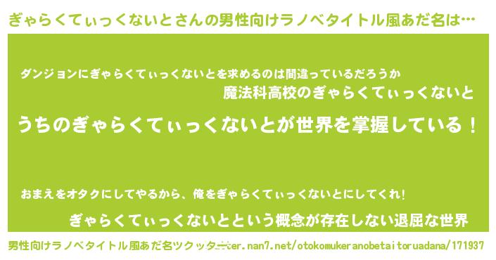 | 意味不明あだ名 | 『とにかく怪しいぎゃらくてぃっくないと』 |