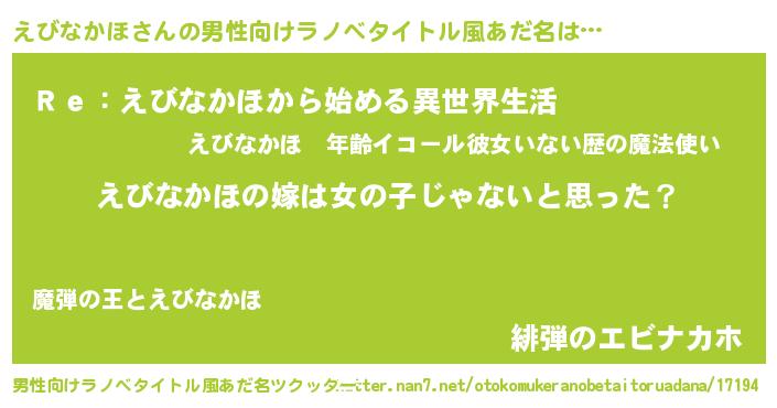 | 女子向けラノベタイトル風あだ名 | 『えびなかほ様がみてる』 |