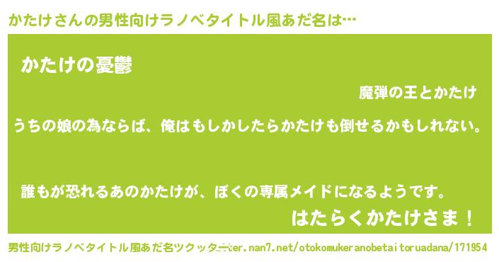 | 胡散臭い通販商品みたいなあだ名 | 『運命の人と巡り会える高級そうな壺…その名も「かたけ」』 |