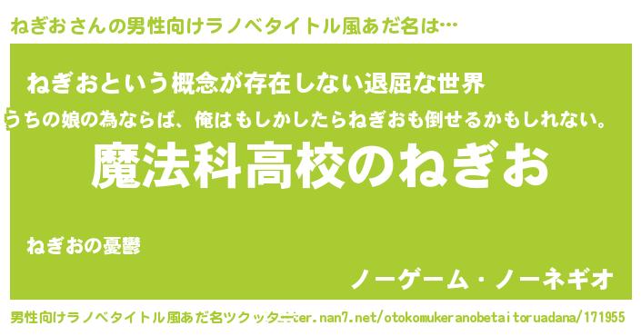 | ヒーロー風カッコイイあだ名 | 『超時空戦士ネギオ』『ネオネギオ』 |