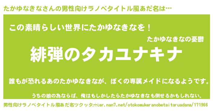 | 意味不明あだ名 | 『住所不定無職たかゆなきな(43歳)』 |