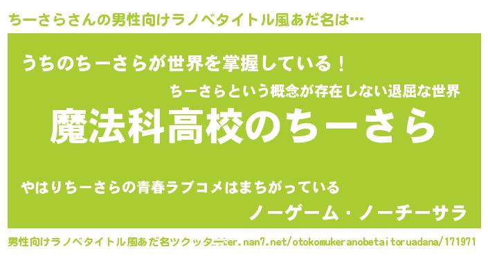 | 女子向けラノベタイトル風あだ名 | 『ちーさらアンティーク』 |