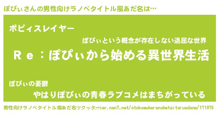 | 女子向けラノベタイトル風あだ名 | 『ぽぴぃストレイドッグス』 |