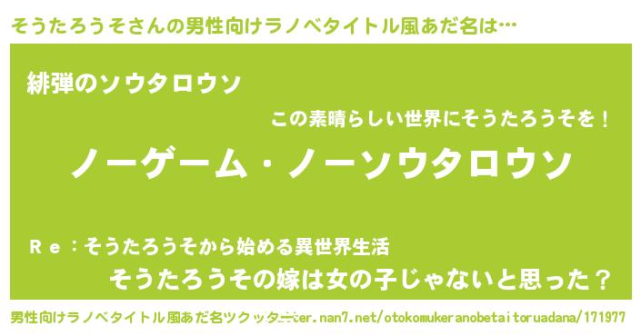 | 女子向けラノベタイトル風あだ名 | 『そうたろうそ恋絵巻』 |