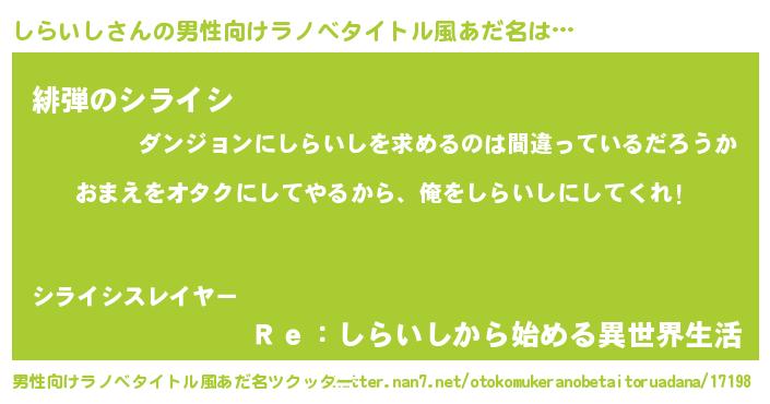 | ヒーロー風カッコイイあだ名 | 『友情の使者しらいし』『黄金騎士シラ』 |