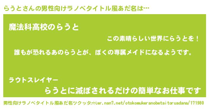 | 意味不明あだ名 | 『永久保存らうと』『自称らうと』 |