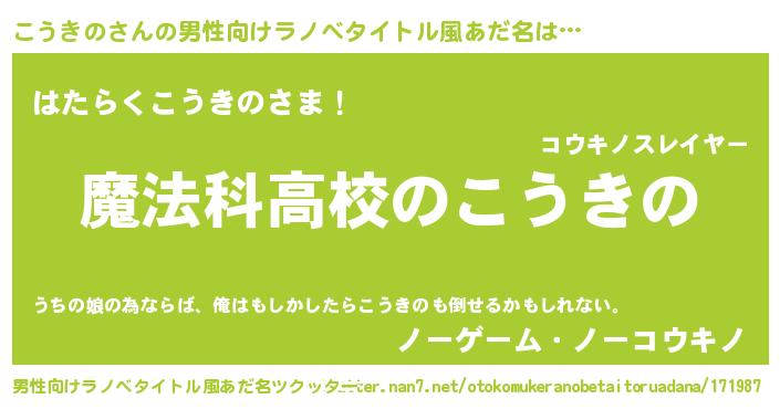 こうきのさんの男性向けラノベタイトル風あだ名をツクッター!