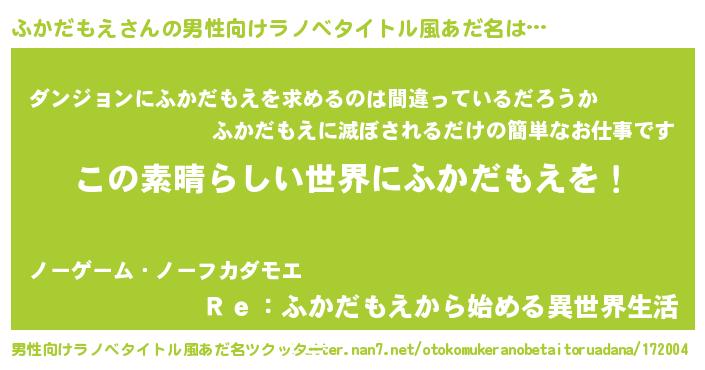 | 意味不明あだ名 | 『住所不定無職ふかだもえ(68歳)』 |
