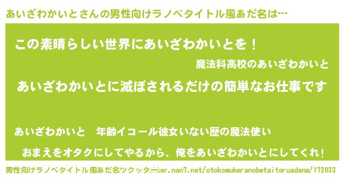 | 意味不明あだ名 | 『住所不定無職あいざわかいと(65歳)』 |