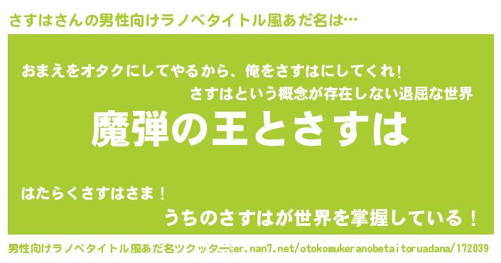 | 意味不明あだ名 | 『住所不定無職さすは(62歳)』 |