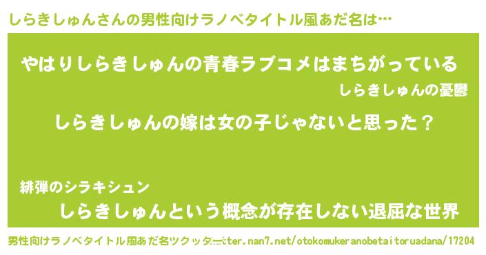 | 女子向けラノベタイトル風あだ名 | 『しらきしゅんの卵を拾いまして』 |