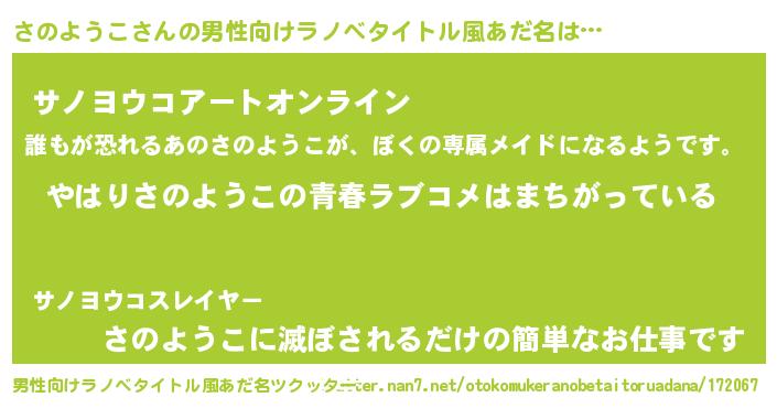 | 女子向けラノベタイトル風あだ名 | 『さのようこの雑貨屋さん』 |