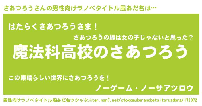 | 女子向けラノベタイトル風あだ名 | 『さあつろうなんてお断りですっ。』 |