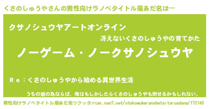| 女子向けラノベタイトル風あだ名 | 『くさのしゅうや恋絵巻』 |