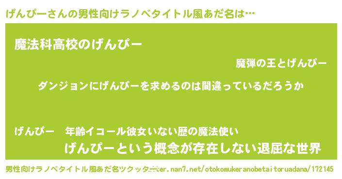 | 女子向けラノベタイトル風あだ名 | 『げんぴーは平凡を望む』 |