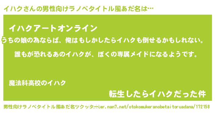 | ヘコむあだ名 | 『イハク(笑)』『イハもー』『豆乳』 |