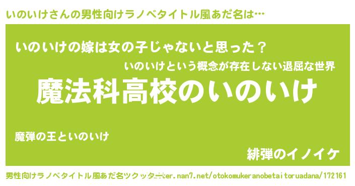 | 意味不明あだ名 | 『自称いのいけ』『永久保存いのいけ』 |