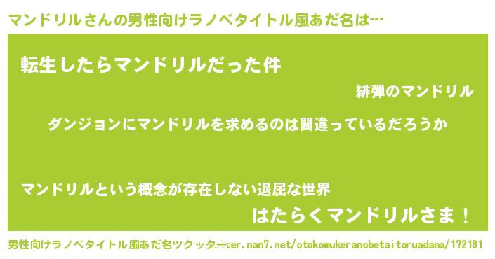 | 女子向けラノベタイトル風あだ名 | 『マンドリルは平凡を望む』 |