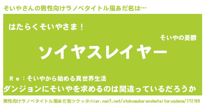 | ヒーロー風カッコイイあだ名 | 『暗黒騎士ソイ』『スーパーソイヤ』 |