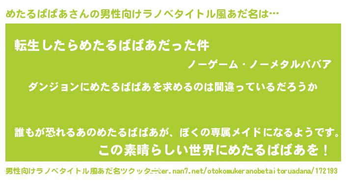 | 意味不明あだ名 | 『とにかく怪しいめたるばばあ』 |