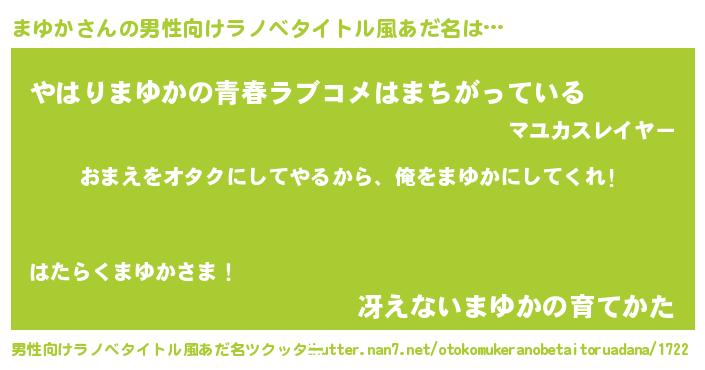 | 胡散臭い通販商品みたいなあだ名 | 『100人中100人が認めた隕石のかけら…その名も「まゆか」』 |