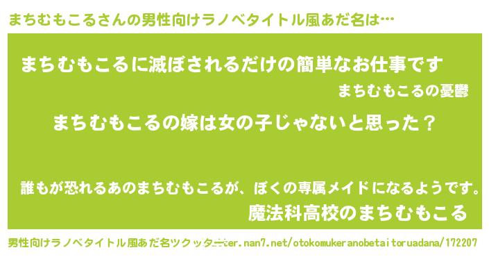 | 胡散臭い通販商品みたいなあだ名 | 『全米が絶賛したサプリメント…その名も「まちむもこる」』 |