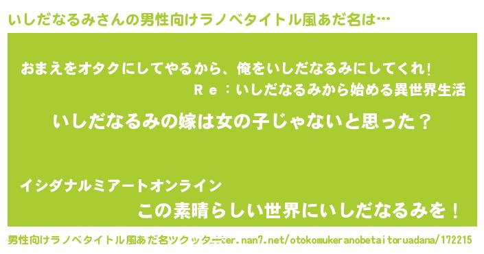 | 女子向けラノベタイトル風あだ名 | 『いしだなるみ様がみてる』 |