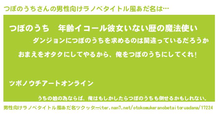 | 伝説のあだ名 | 『人々から恐れられる錬金術士つぼのうち』 |