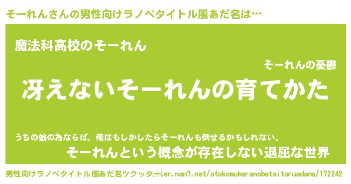 | ヘコむあだ名 | 『そーれん(笑)』『そーにー』『豆乳』 |