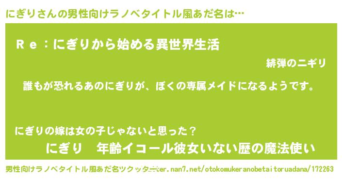 | ヘコむあだ名 | 『にぎり(笑)』『にぎっぺ』『つくし』 |