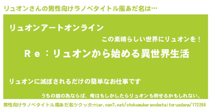 | ヒーロー風カッコイイあだ名 | 『最強戦士リュオン』『スーパーリュオン』 |