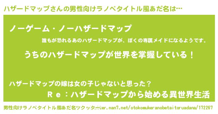 | ヘコむあだ名 | 『ハザードマップ(笑)』『ハザっちょ』 |