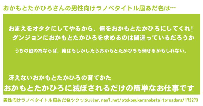 | 女子向けラノベタイトル風あだ名 | 『おかもとたかひろ伯爵の花嫁』 |