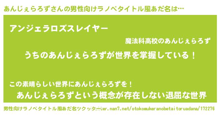 | 胡散臭い通販商品みたいなあだ名 | 『前代未聞の健康食品…その名も「あんじぇらろず」』 |
