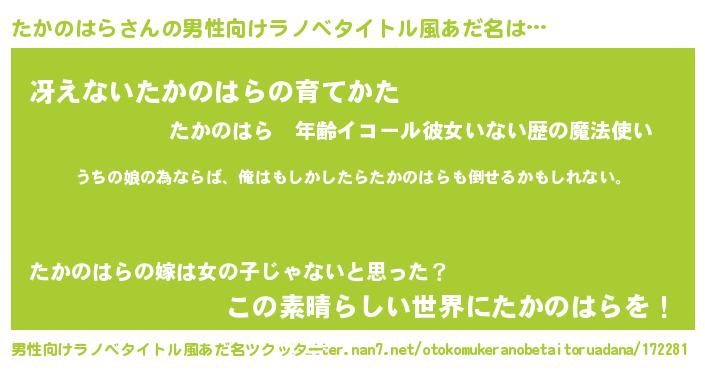 | ファンタジー風あだ名 | 『エターナルタカノハラー』 |