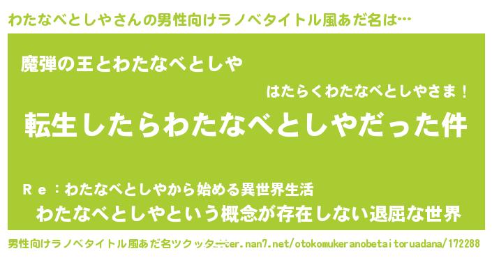 | 伝説のあだ名 | 『古より伝わる勇者わたなべとしや』 |