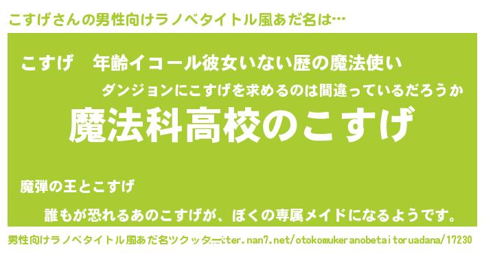 | 女子向けラノベタイトル風あだ名 | 『こすげアンティーク』 |