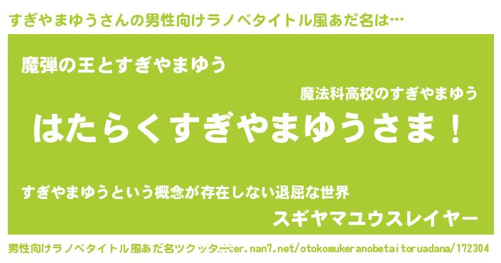 | 意味不明あだ名 | 『住所不定無職すぎやまゆう(3歳)』 |