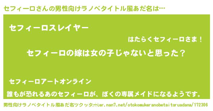 | ヘコむあだ名 | 『セフぷりん』『セフィーロ(笑)』 |