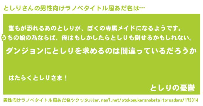 | 女子向けラノベタイトル風あだ名 | 『としりは平凡を望む』『としりの婚約者』 |