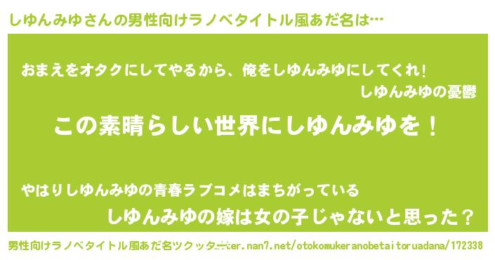 | 胡散臭い通販商品みたいなあだ名 | 『あなたにだけ特別に提供する100年もののヴィンテージワイン…その名も「しゆんみゆ」』 |