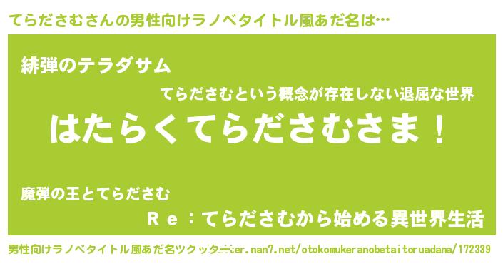 | 意味不明あだ名 | 『自称てらださむ』『永久保存てらださむ』 |