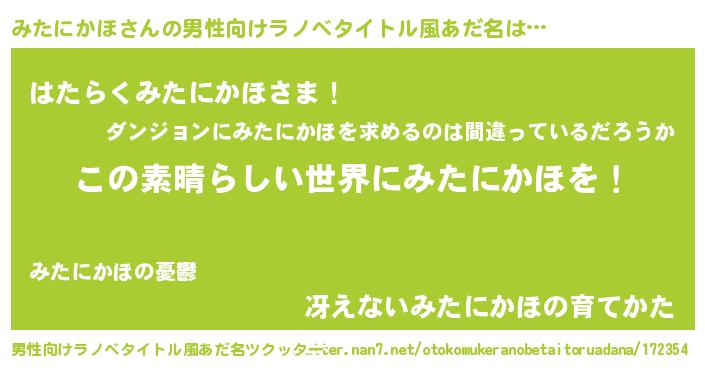 | 意味不明あだ名 | 『住所不定無職みたにかほ(77歳)』 |