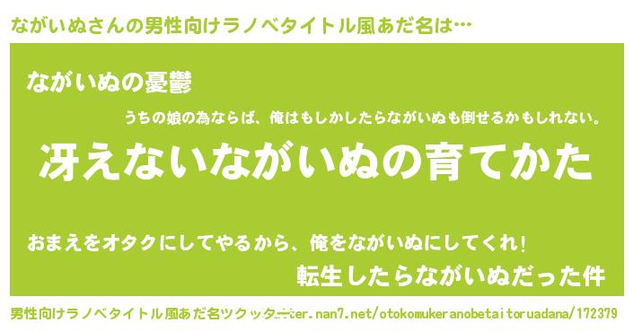 | ヒーロー風カッコイイあだ名 | 『スーパーナガイヌ』『炎刃騎士ナガ』 |
