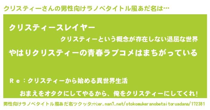 | 欧米人風あだ名 | 『クリスティークリステル』 |