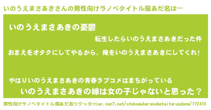 | 胡散臭い通販商品みたいなあだ名 | 『100人中100人が認めたイリジウム磁石…その名も「いのうえまさあき」』 |