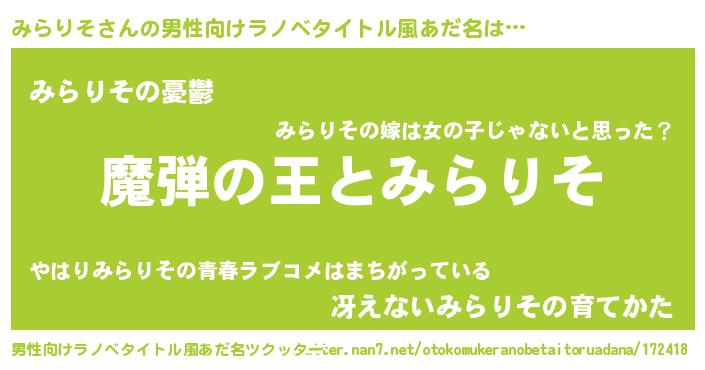 | 意味不明あだ名 | 『住所不定無職みらりそ(7歳)』 |