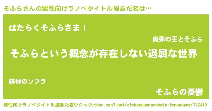 | 女子向けラノベタイトル風あだ名 | 『そふらの契約王妃』 |