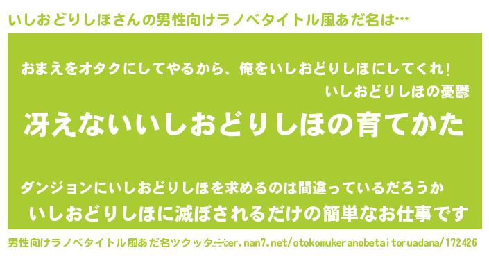| 胡散臭い通販商品みたいなあだ名 | 『お金では代えられないイリジウム磁石…その名も「いしおどりしほ」』 |